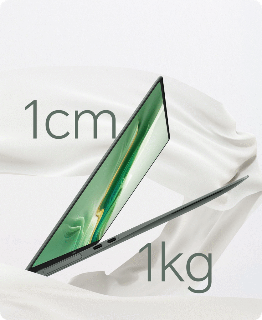 Imagine holding a laptop that’s just 1 kg light and only 1 cm thin—yep, that is what you get with the MagicBook Art 14 . It is crafted from aerospace-grade magnesium alloy (with titanium and aluminum details), giving it serious strength without the bulk. Whether in Emerald Green or Sunrise White, it looks classy and stylish .